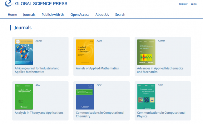 В рамках национальной подписки Российский центр научной информации (РЦНИ) открыл тестовый доступ к Global Science Press Selected Journals Collection – коллекции журналов в области математики и смежных дисциплин научного издательства Global Science Press.
