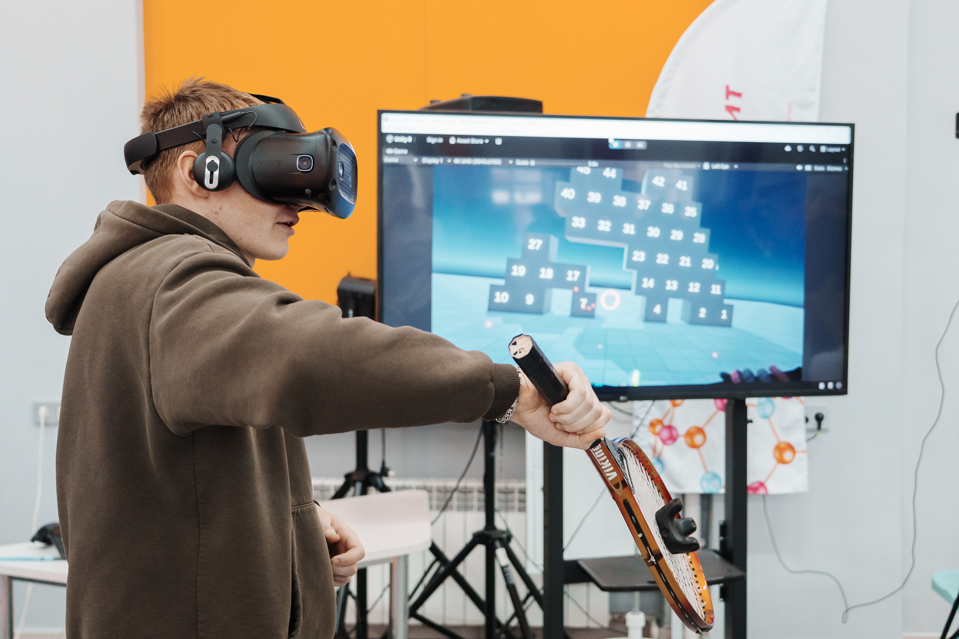Декан факультета технологий, инжиниринга и дизайна Виталий Лисовский подготовил выступление таким образом, чтобы оно было интересно и понятно самым юным участникам мероприятия – учащимся кировских школ. В увлекательной и непринужденной манере спикер провел презентацию инженерной школы Политеха, ознакомив потенциальных абитуриентов с некоторыми проектами: прототипом устройства мультиматериальной 3D-печати, аэросимулятором, виртуальным арканоидом.