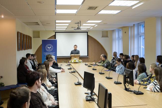 Заключительное мероприятие цикла состоялась 20 ноября в Юридическом институте ВятГУ. Первокурсники и приглашенные спикеры обсудили опыт духовного служения на СВО.