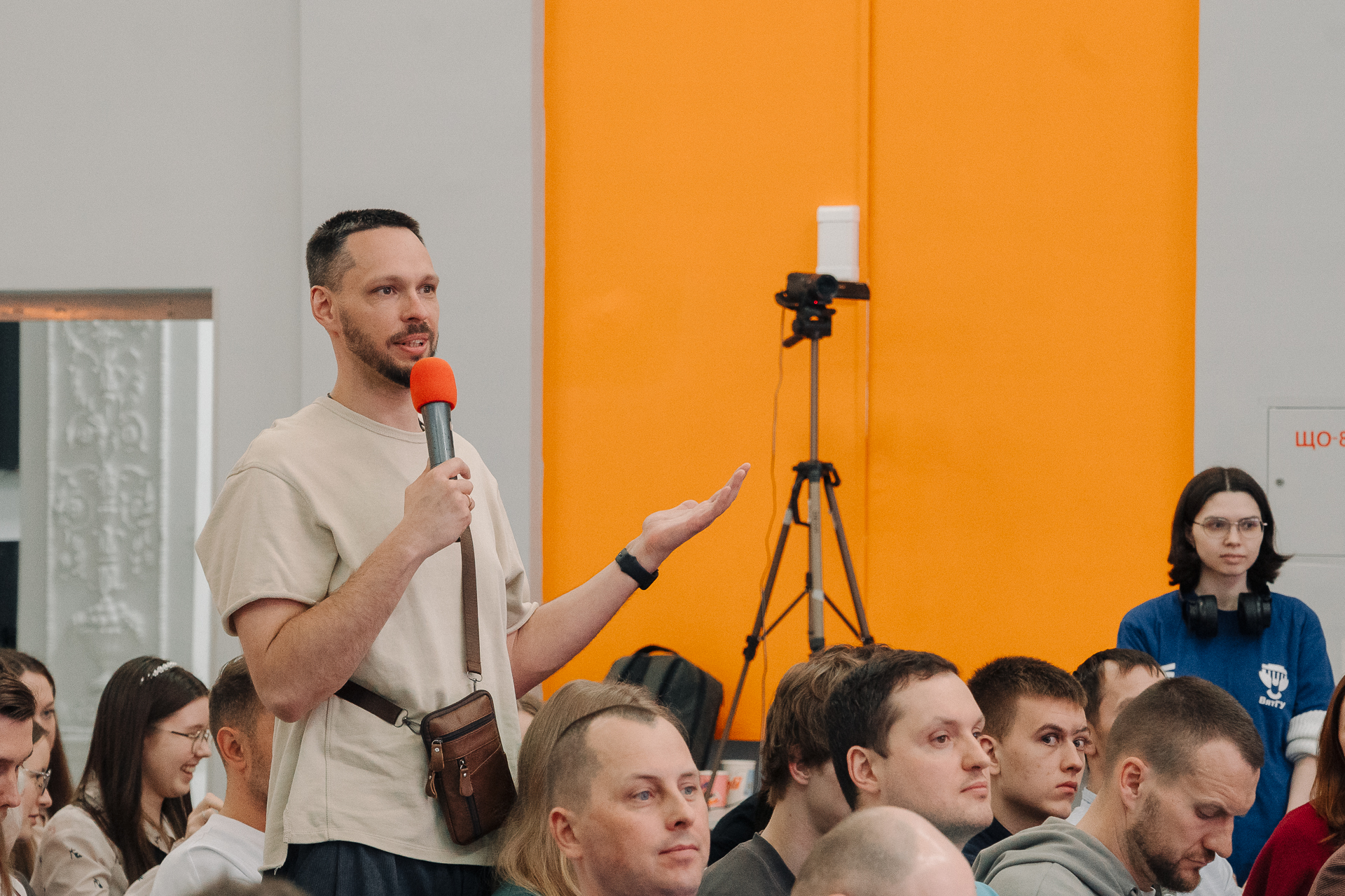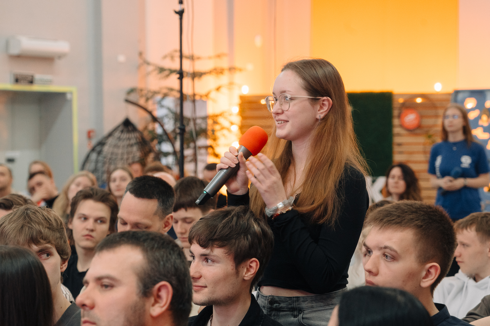 Вторую часть встречи составили вопросы – их было множество. Критерии выбора бизнес-партнеров, возможность применения ИИ на производстве, реакция компании на наиболее острые вызовы времени – ответ на каждый вопрос Андрей подкреплял аргументами, показывая при этом различные стороны проблем и ситуаций. Подкупили такие качества спикера, как искренность и уважительное отношение к людям, способность помнить добро и проявлять благодарность. О своем коллеге Фёдоре Овчинникове Андрей отозвался так: