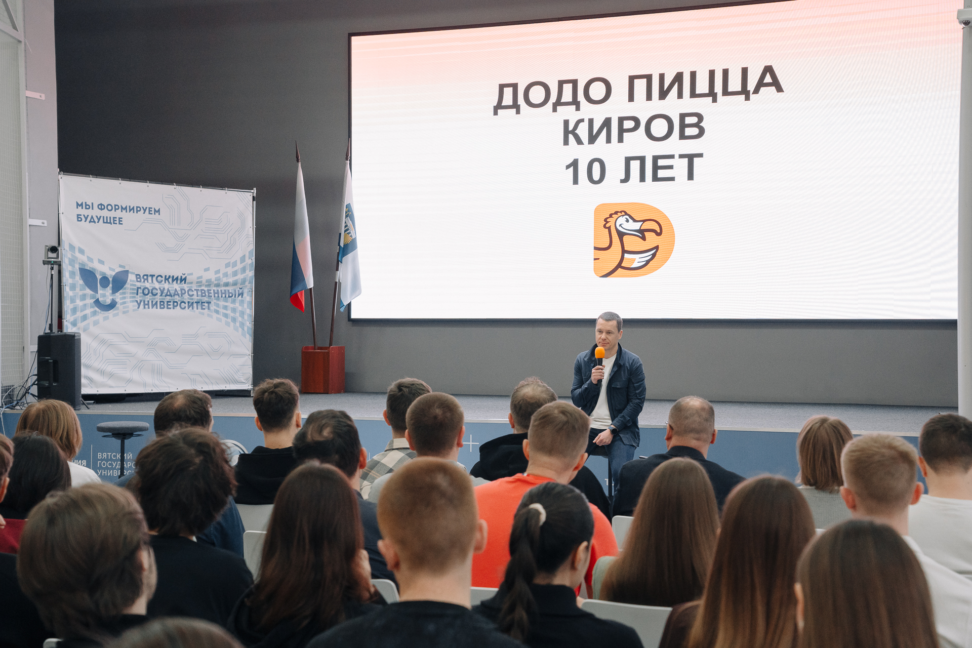 3 апреля в рамках проекта «Лекции в Политехническом» в «Инженериуме» ВятГУ состоялась встреча с Андреем Петелиным – председателем совета директоров компании Dodo Brands, объединяющей сети «Додо Пицца» и «Дринкит».