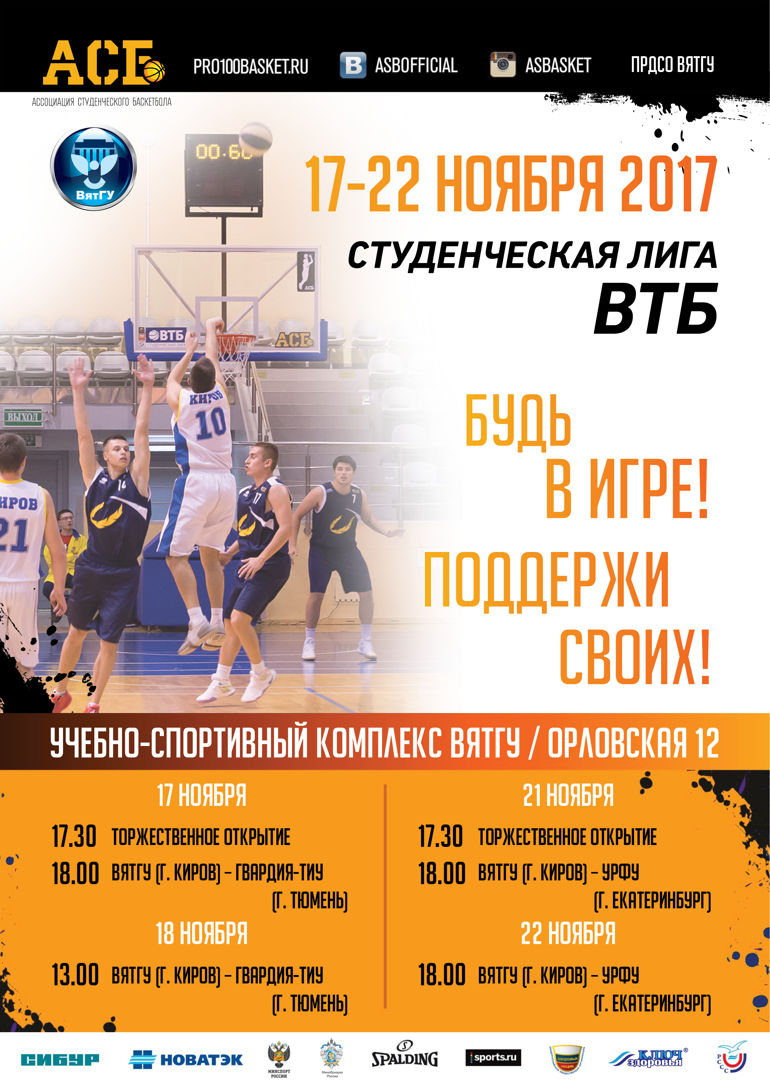 В ВятГУ пройдут матчи Студенческой лиги ВТБ Чемпионата Ассоциации студенческого баскетбола России среди мужских команд