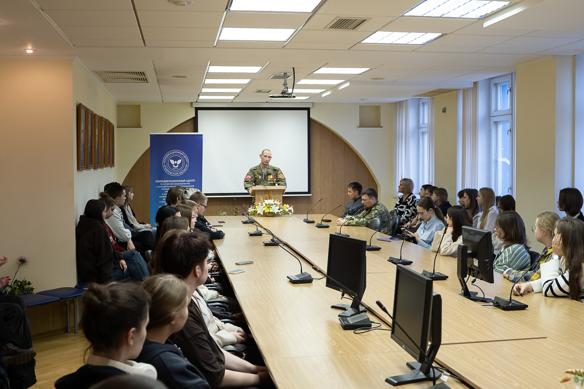 Заключительное мероприятие цикла состоялась 20 ноября в Юридическом институте ВятГУ. Первокурсники и приглашенные спикеры обсудили опыт духовного служения на СВО.