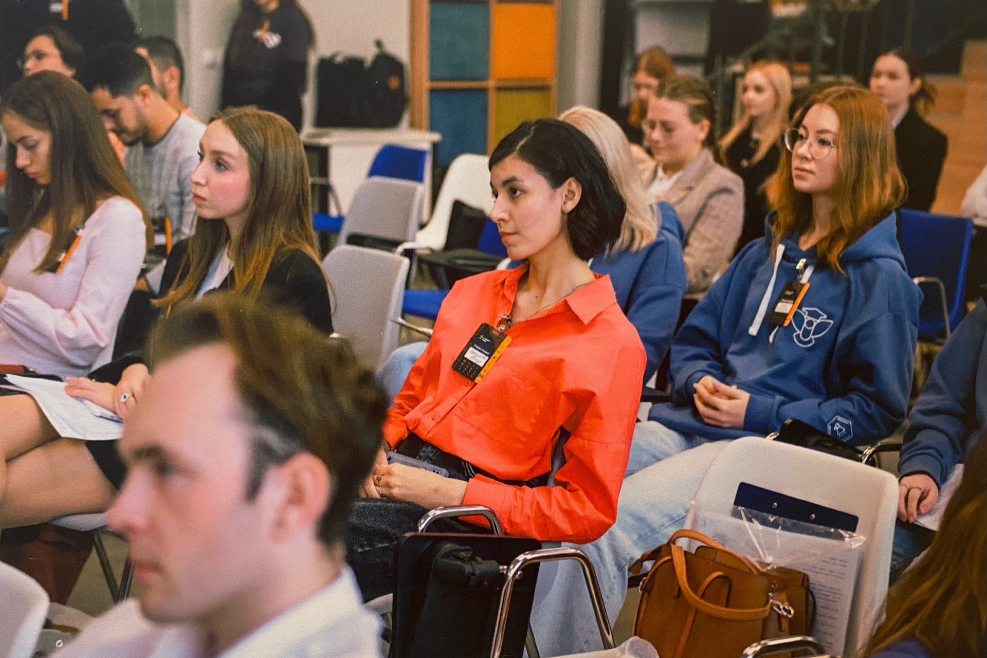 Будущий переводчик Карина Тислерова стала известна за пределами факультета лингвистики в мае, одержав победу в финале внутривузовского конкурса «Староста года - 2023». Харизматичной первокурснице удалось обойти достойных соперниц - в этом, бесспорно, и ее личная заслуга, и вклад впечатляющей группы поддержки. Поболеть за Карину пришли преподаватели и студенты факультета лингвистики, прежде всего ее одногруппники.