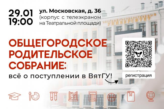 Приглашаем вас на общегородское родительское собрание, где вы получите исчерпывающую информацию о поступлении в Вятский государственный университет (ВятГУ) — ведущий вуз Кировской области.