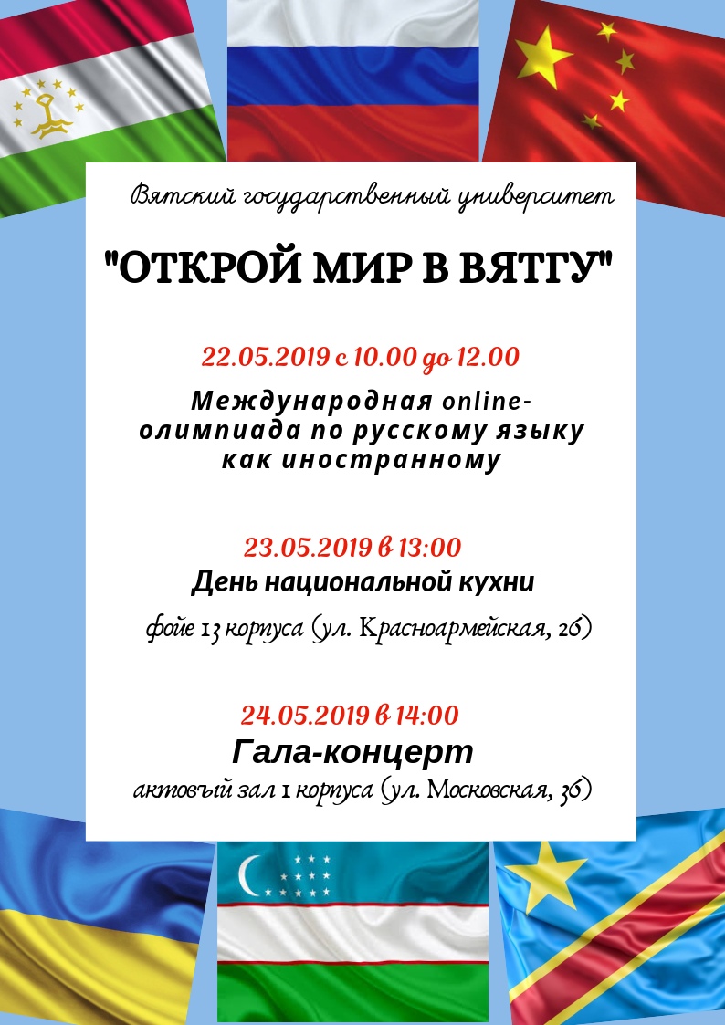 Воспользуйтесь уникальной возможностью больше узнать о странах, представители которых обучаются в ВятГУ!