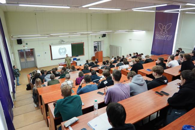 Ветеран СВО, руководитель Кировского Центра развития беспилотных систем Данил Зонов рассказал студентам о требованиях, предъявляемых к потенциальному оператору БПЛА, его здоровью, уровню образования, возрасту, а также о денежном довольствии военнослужащих и нюансах военной подготовки.