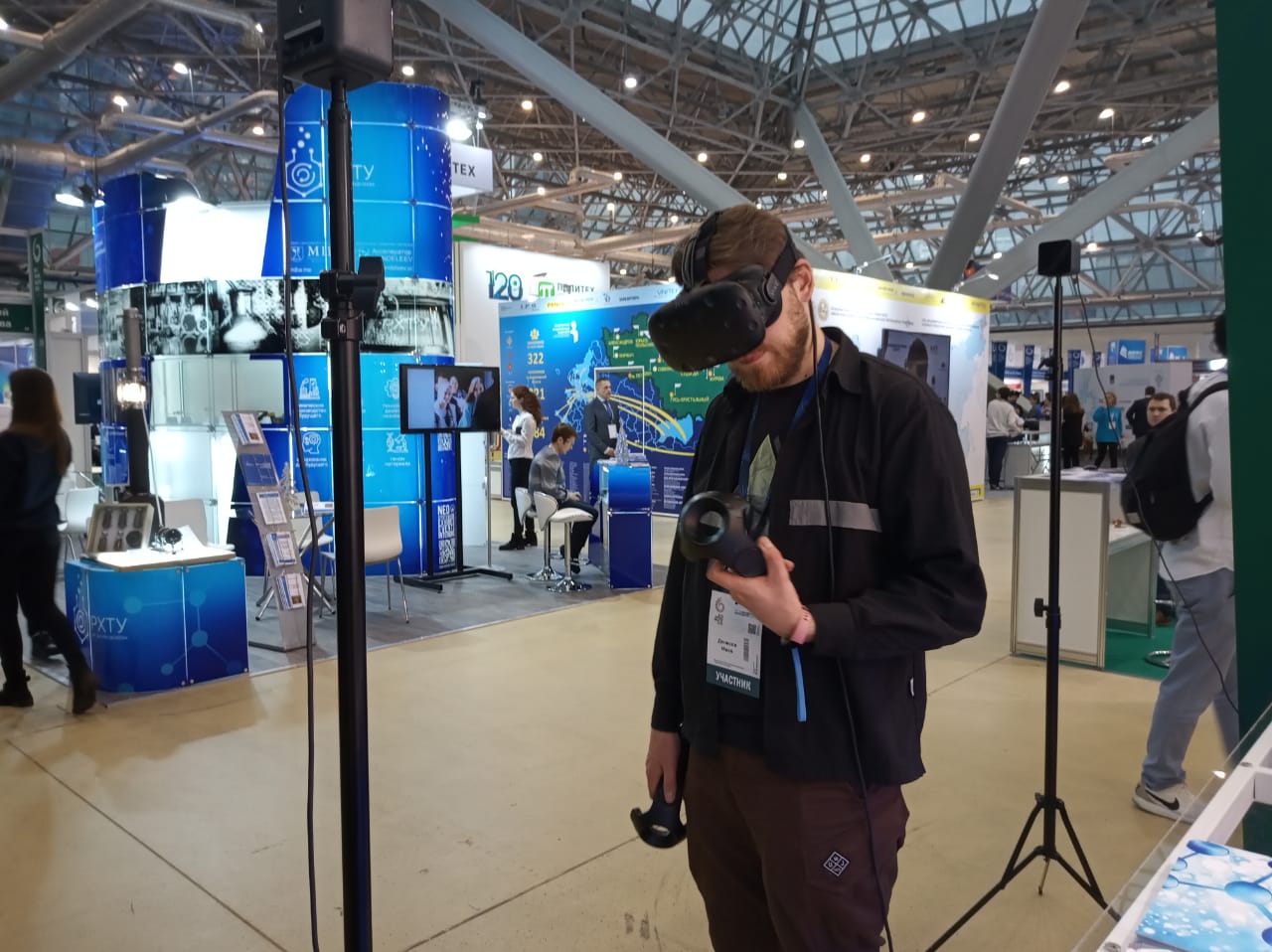 Вятский государственный университет представил на выставке разработки Института химии и экологии, Политехнического института, Института биологии и биотехнологии, а также тренажер виртуальной реальности асептического производства биофармацевтических препаратов.