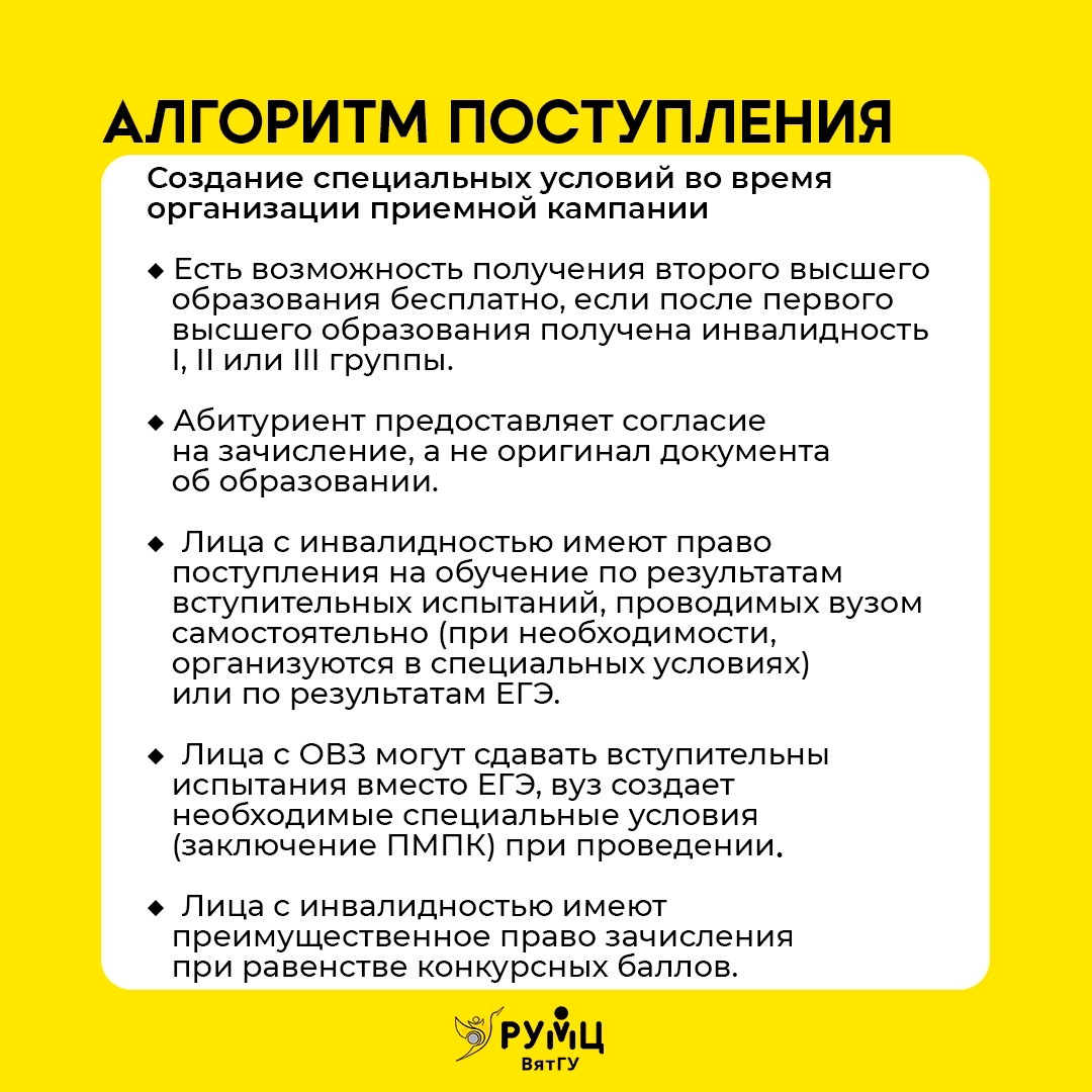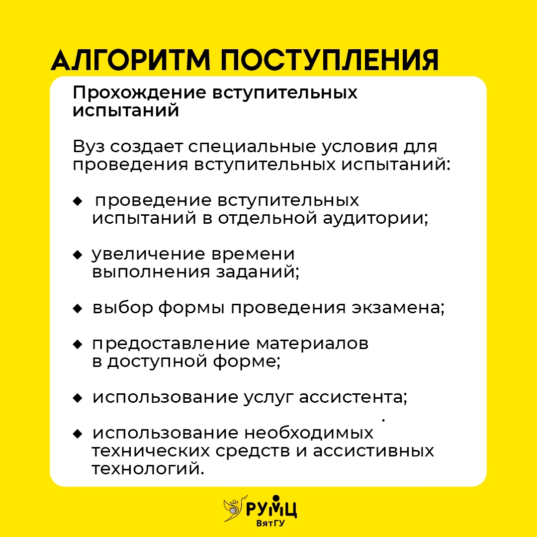 Вятский государственный университет создал все условия для комфортного обучения студентов с различными нозологиями. Над доступностью высшего инклюзивного образования работает команда опытных специалистов, готовых развивать профессиональные навыки по обучению, сопровождению и трудоустройству студентов, оказывать консультационную поддержку сотрудникам, обучающимся, абитуриентам и их родителям.
