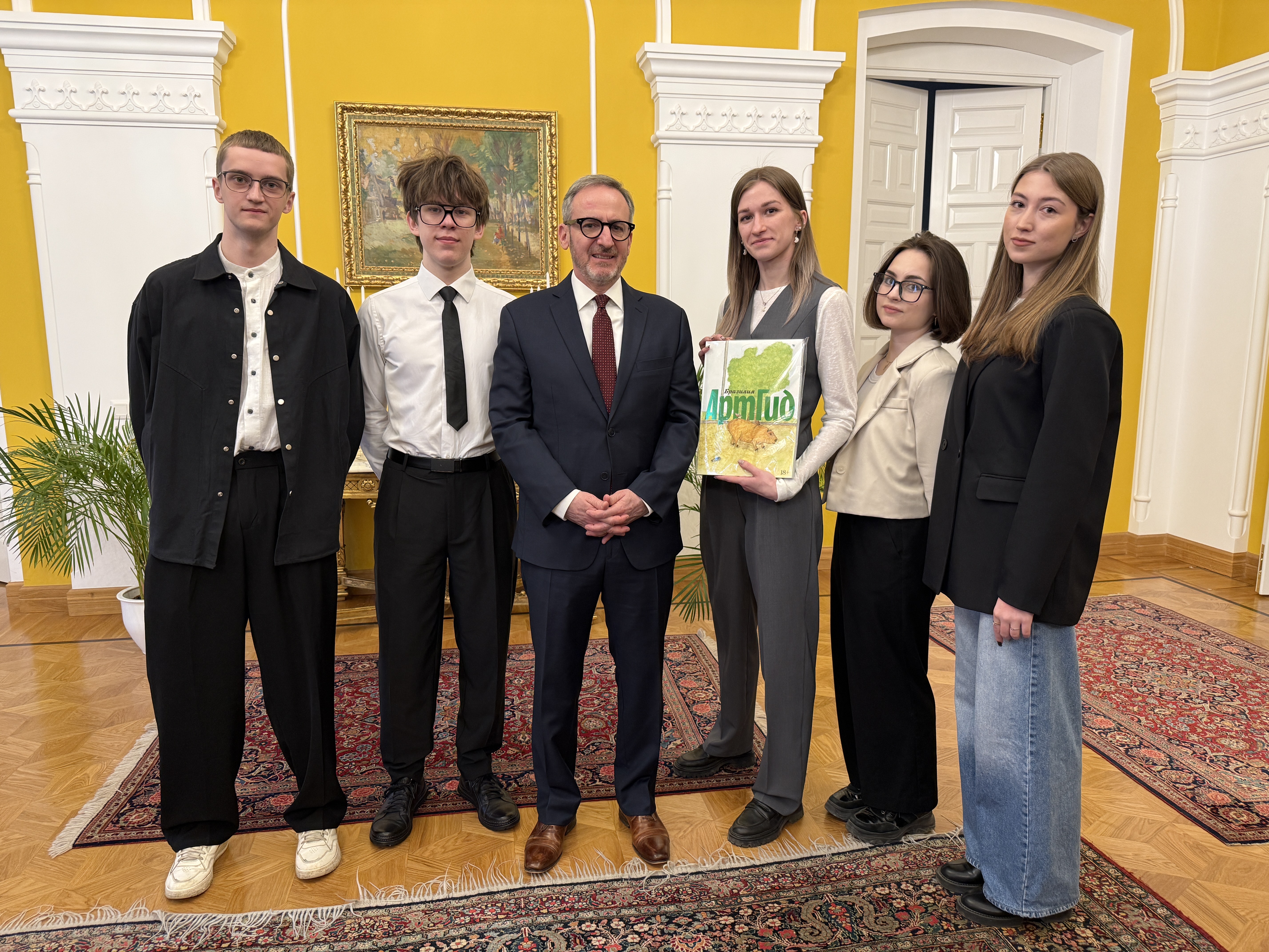 В рамках визита состоялась рабочая встреча с Чрезвычайным и Полномочным Послом Республики Бразилия в России Сержио Родригесом дос Сантосом. Студенты, являющиеся членами Переводческого объединения «Lingua» – Дарья Караваева, Софья Козлова, Егор Галибин и Виталий Медянский – представили Вятский государственный университет, подробно рассказав о ключевых образовательных программах, научной деятельности и внеучебных инициативах факультета лингвистики ВятГУ. В ходе диалога стороны обсудили специфику международной дипломатической деятельности, форматы культурного взаимодействия, а также перспективы развития академического обмена между российскими и бразильскими вузами.