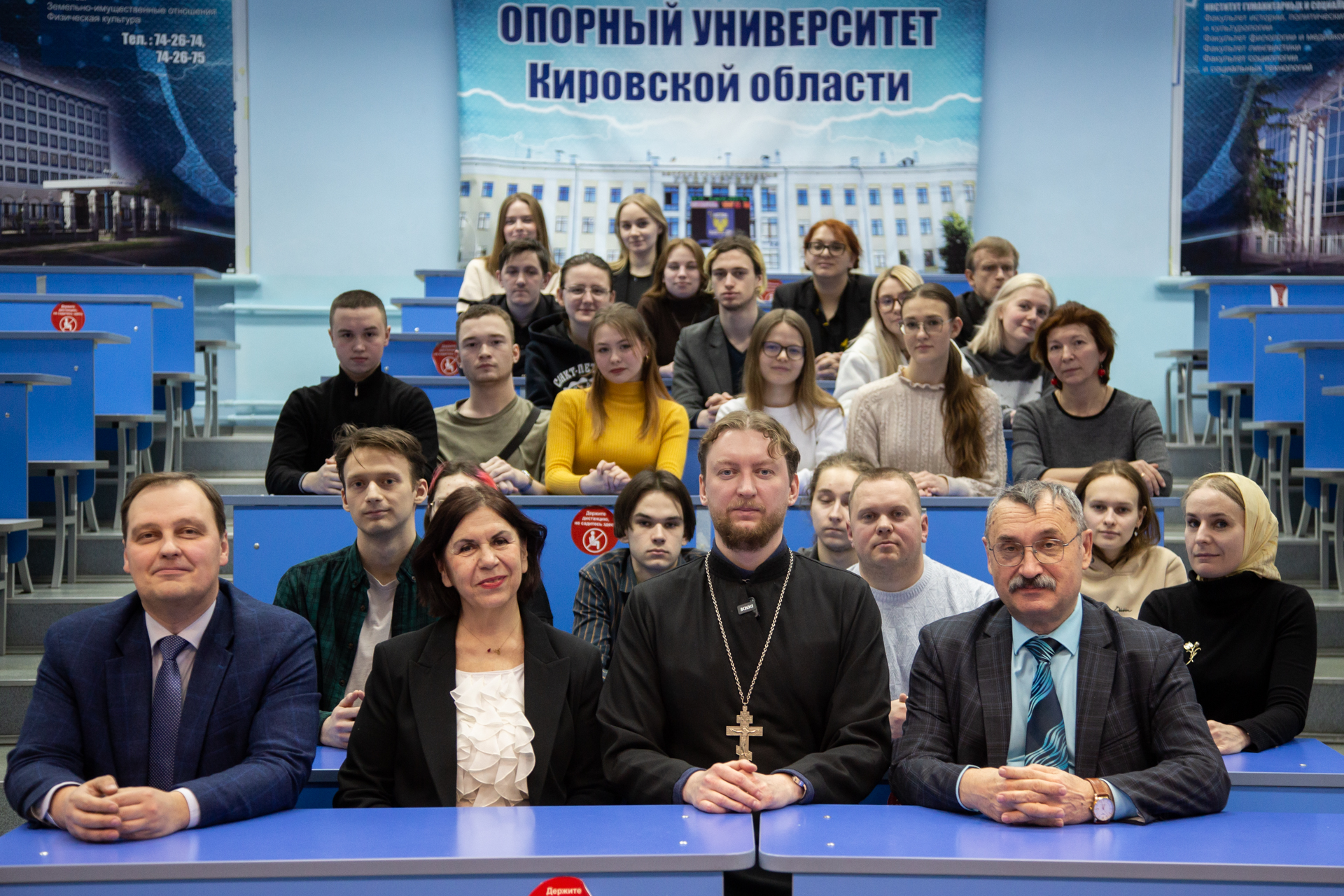 В День российской науки на просветительском проекте «Лекции в Политехническом» состоялась встреча с выпускником факультета автоматики и вычислительной техники ВятГУ (2009), а впоследствии – Московской духовной академии (2020), специалиста по взаимодействию с образовательными организациями Центра подготовки церковных специалистов Вятской епархии РПЦ "Вятское Духовное училище", клириком храма Рождества Пресвятой Богородицы (Вятская Епархия, город Киров), священником Алексеем Шишкиным на тему: «Фундамент семейного счастья». Встреча открыла весенне-летнюю сессию проекта.