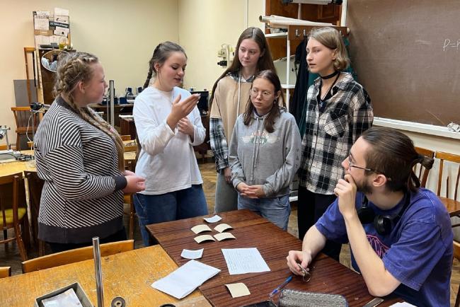 Для школьников из КОГОБУ Лицея №9 г. Слободского и КОГОБУ СШ пгт Оричи был организован практикум «Физика вокруг нас» под руководством старшего преподавателя кафедры физики и методики обучения физики, руководителя образовательной программы "Учитель физики" Марины Толмачевой. Участники прошли интеллектуальный квест, состоящий из 4 станций, где решали реальные жизненные задачи с применением физических законов, наблюдали и объясняли опыты, проводили собственные эксперименты и расшифровывали физику в занимательных рисунках.
