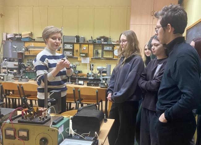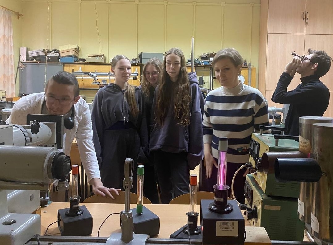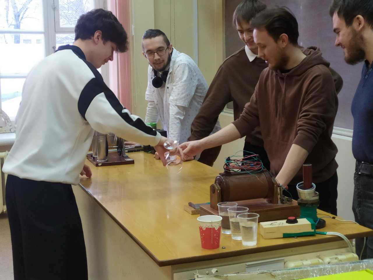 Школьники посетили специализированные лаборатории, где физика оживала на их глазах. В лаборатории механики школьники познакомились с высокоточными измерительными приборами — теодолитом и катетометром, без которых не обходится ни одно серьезное исследование. А демонстрация стоячей звуковой волны наглядно показала, как энергия может «застывать» в пространстве. В молекулярной физике явление стоячей волны предстало в новом свете — через периодическое усиление и ослабление звука. Также юные гости узнали о силах сопротивления и вязкости, объясняющих, почему движение тел в разных жидкостях происходит с разной скоростью, даже если плотности жидкостей одинаковы. Лаборатория электричества перенесла всех в эпоху великих изобретений. Устройство электронно-лучевой трубки раскрыло секрет работы старого кинескопа, а история лампы накаливания и её живая демонстрация напомнили о важности простых, но гениальных идей. В лаборатории оптики школьники обсудили строение глаза, самостоятельно нашли у себя «слепое пятно» и с удивлением наблюдали за дезориентирующим эффектом очков-перевёртышей.