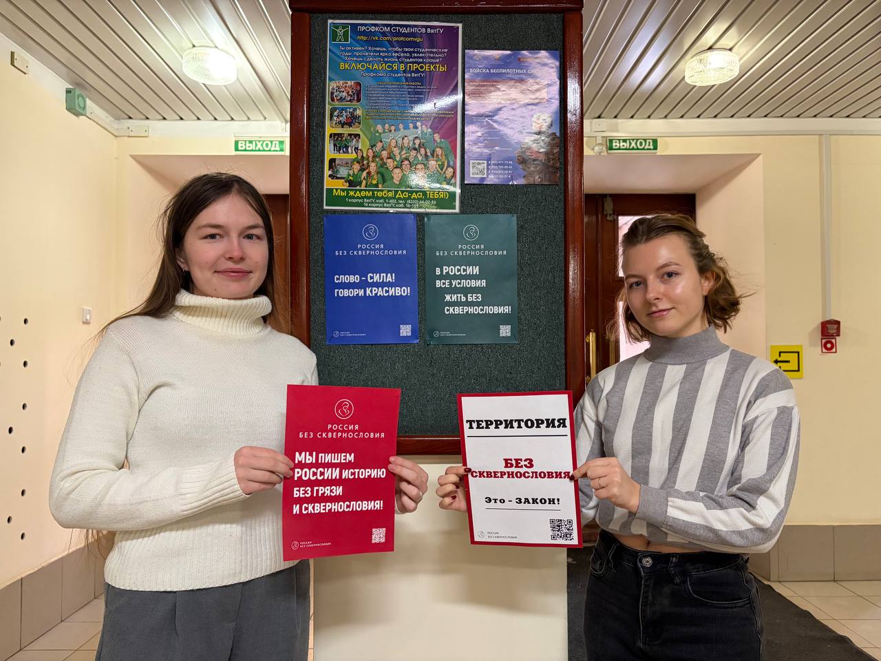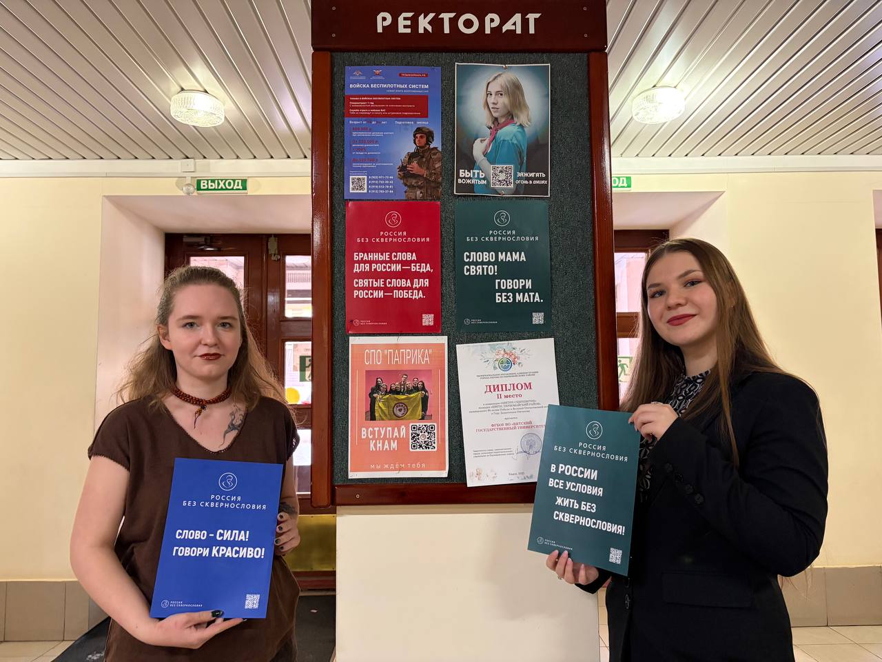 Во Всемирный день борьбы с матом, который отмечается 3 февраля, пространство 14 корпуса украсили плакаты. «Мы пишем России историю без грязи и сквернословия», «Слово МАМА свято! Говори без мата», «Бранные слова для России – беда, святые слова для России – Победа», «В России - все условия жить без сквернословия» - в этих словах заключен важный для каждого россиянина смысл.