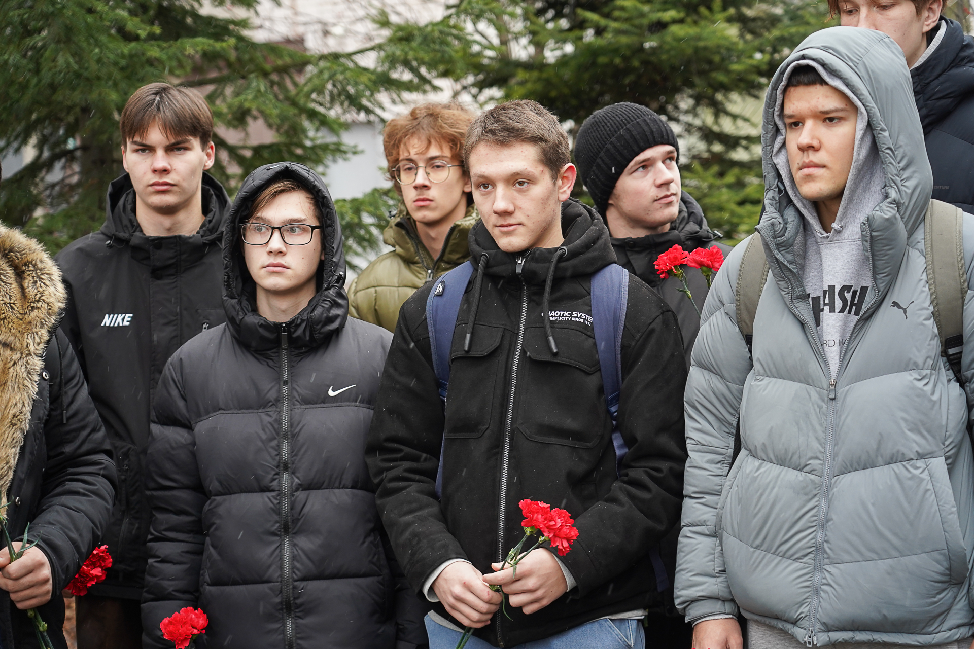 В эту памятную дату студенты первого курса электротехнического факультета, их преподаватели и сотрудники отдела воспитательной работы и социальной адаптации Вятского государственного университета возложили цветы к Памятнику молодому солдату в Студгородке.