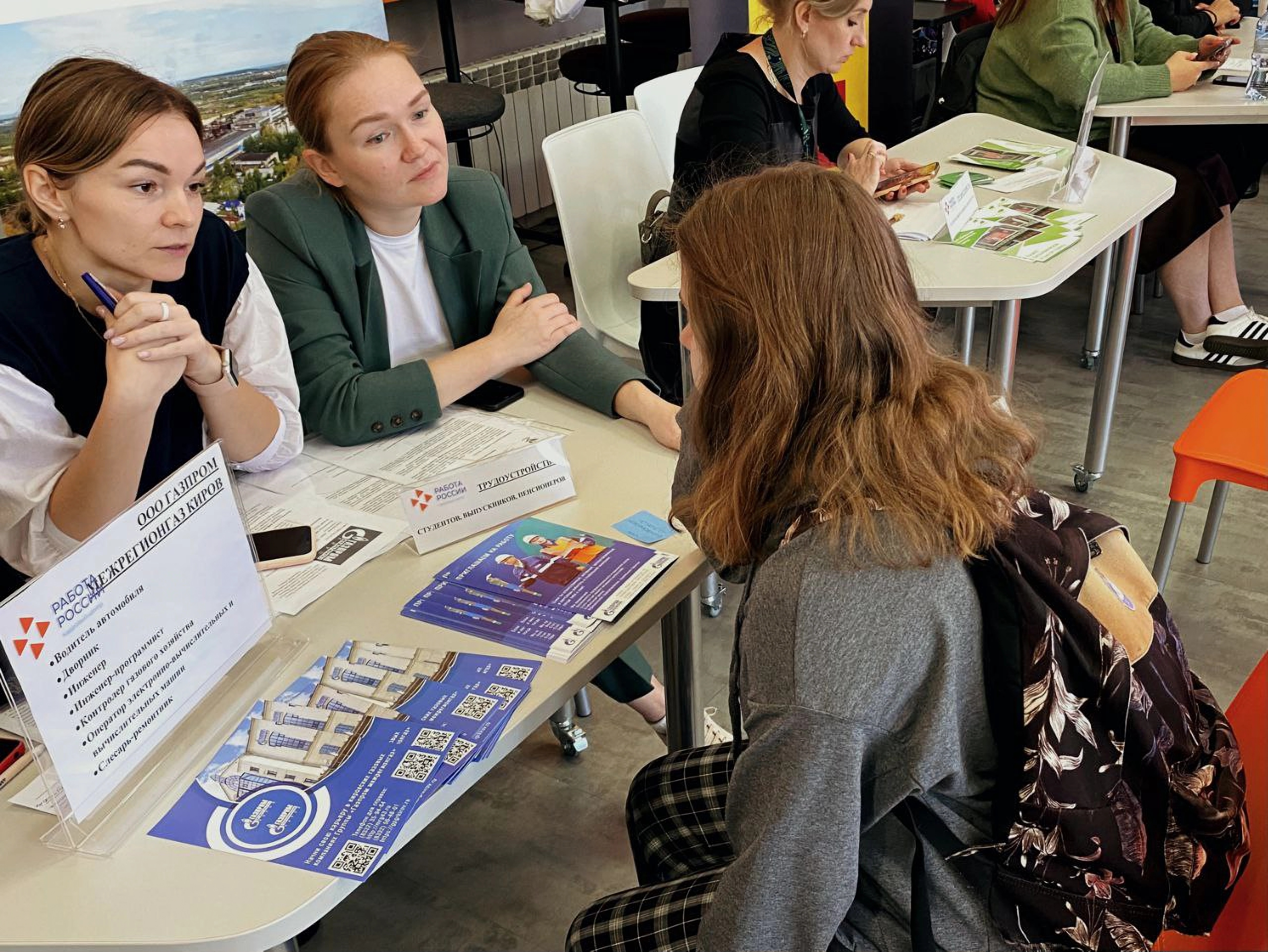 Студенты выпускных курсов также не упустили возможность встретиться с потенциальными работодателями, пообщаться со специалистами Центра занятости, получить подробную информацию по специальным программам, а также заполнить анкету-резюме в банк кадрового резерва.