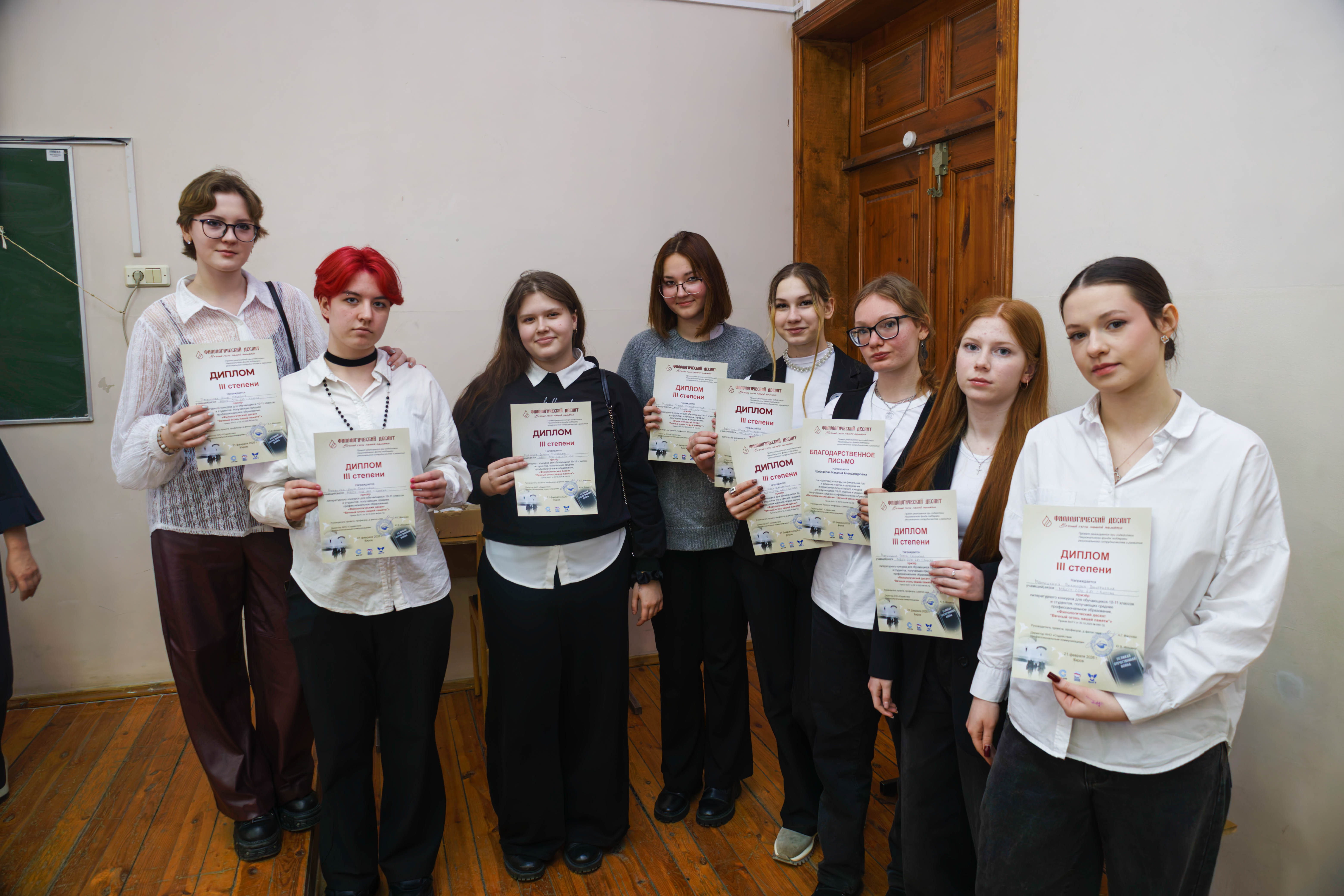 Дипломами III степени награждены обучающиеся 10 А класса МБОУ СОШ № 23 г. Кирова Анна Вшивцева, Ольга Вожегова, София Толстоброва, Диана Лузянина, Мария Чернова, Анна Пасынкова, Злата Черницына, Виктория Малышкина; обучающиеся 10 и 11 классов МБОУ СОШ №45 им. А.П. Гайдара г. Кирова Вероника Баталова, Кира Бердникова, Алена Коротаева, Полина Крупина, Мария Пиминова, Ксения Шихова, Ольга Веретенникова; обучающиеся 11 Б класса МБОУ СОШ с УИОП № 51 г. Кирова Дарина Попцова, Софья Пестова, Екатерина Головкина, Варвара Макарова, Ульяна Бусыгина, Анна Ситникова, Екатерина Браханова.
