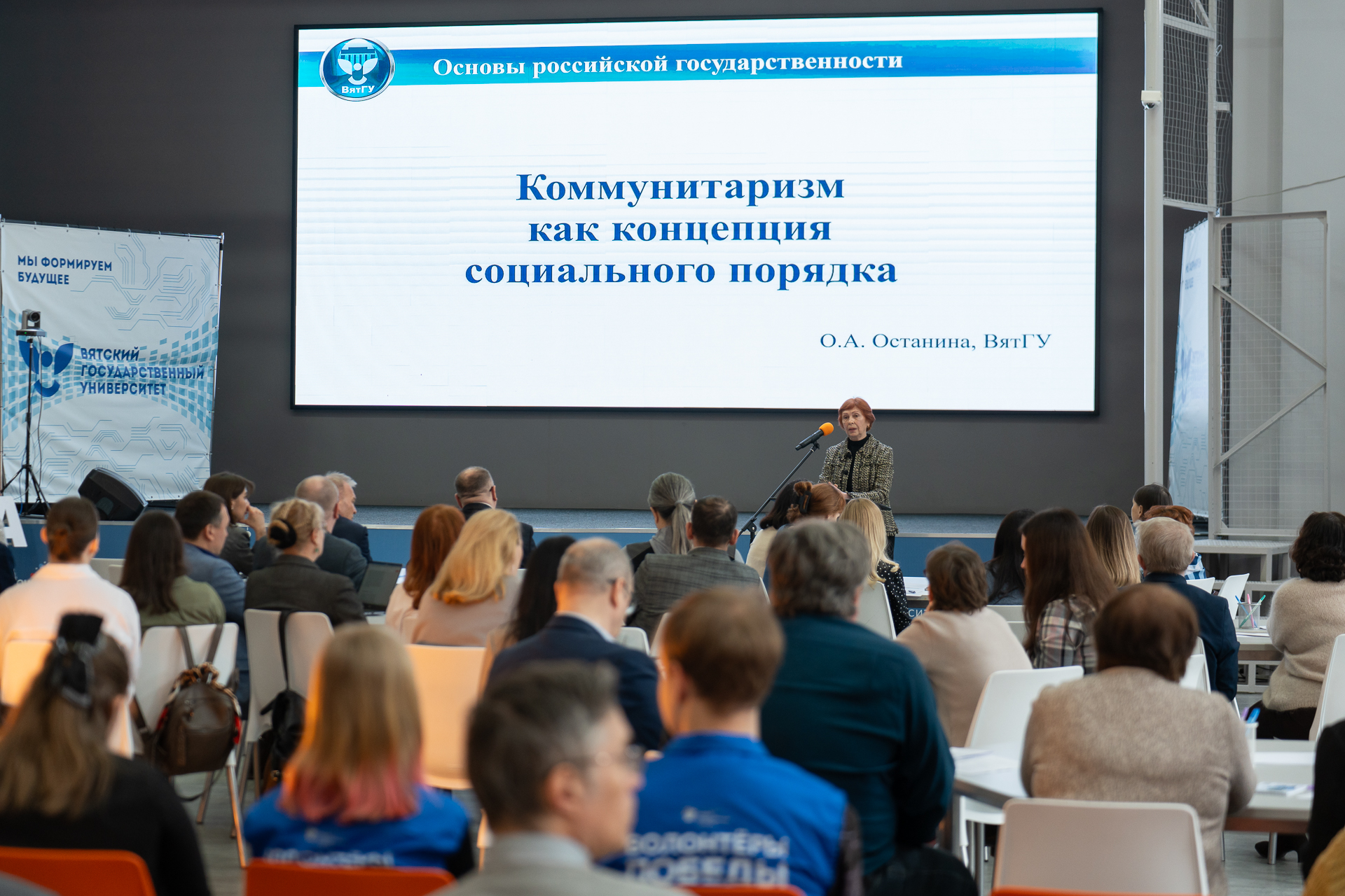 Профессор кафедры культурологии, социологии и философии ВятГУ Ольга Останина выступила с докладом «Коммунитаризм как концепция социального порядка»; а ее коллега Наталья Коротышева, доцент кафедры культурологии, социологии и философии, рассказала о цивилизационном подходе к социальному воспроизводству.