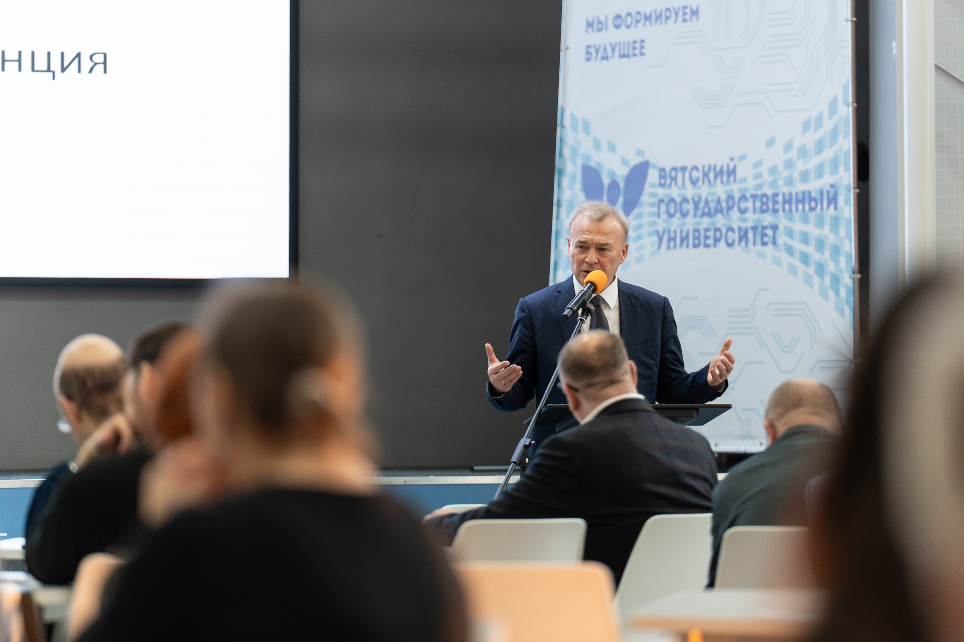Ректор ВятГУ Валентин Пугач также поприветствовал участников конференции, назвав их соратниками и единомышленниками.