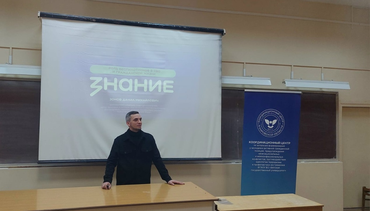 На протяжении двух месяцев на площадках Вятского государственного университета, Кировского филиала АОЧУВО «Московский финансово-юридический университет МФЮА» и Кировского института (филиала) АНО ВО «Московский гуманитарно-экономический университет» было организовано 11 встреч с ветеранами спецоперации Николаем Шишкиным и Данилом Зоновым.