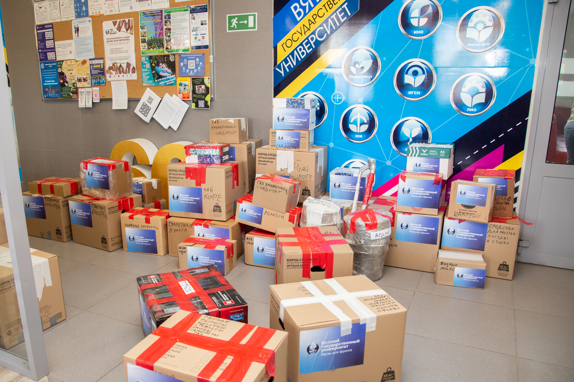 Сбор гуманитарной помощи в университете стартовал 28 июня в рамках всероссийской акции "Вузы для фронта!". За полторы недели студентам и сотрудникам удалось собрать все самое необходимое бойцам: медикаменты, средства личной гигиены, продукты, инструменты, генераторы и многое другое.