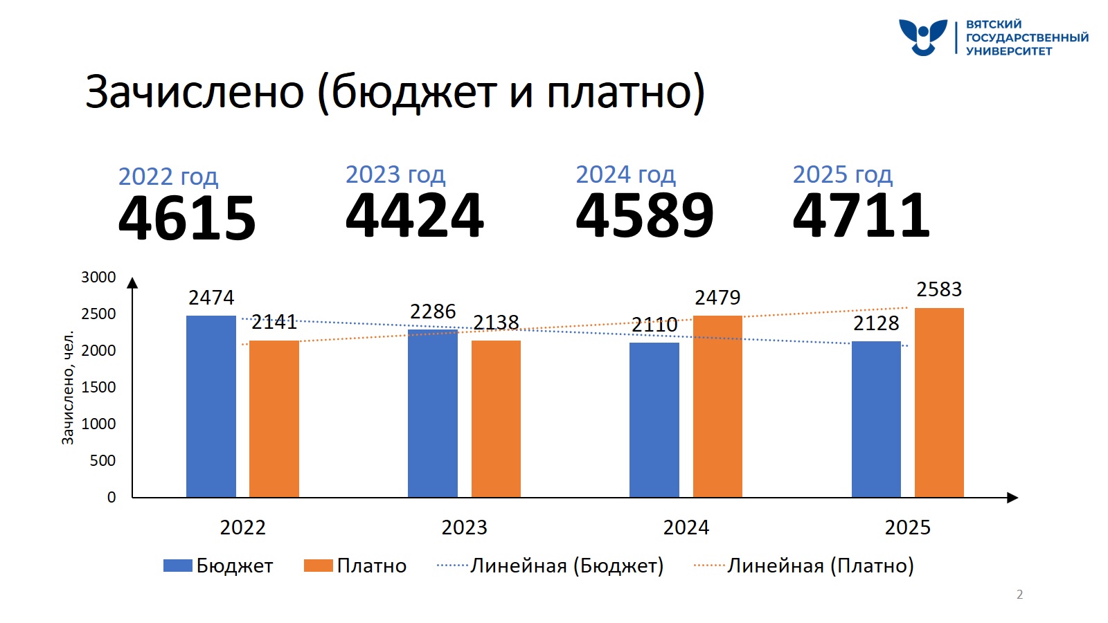 В 2025 году в крупнейший вуз региона было зачислено 4711 человек, что почти на 10% выше чем, в прошлом году. Повышение интереса у абитуриентов отмечается к программам СПО, специалитета и бакалавриата.