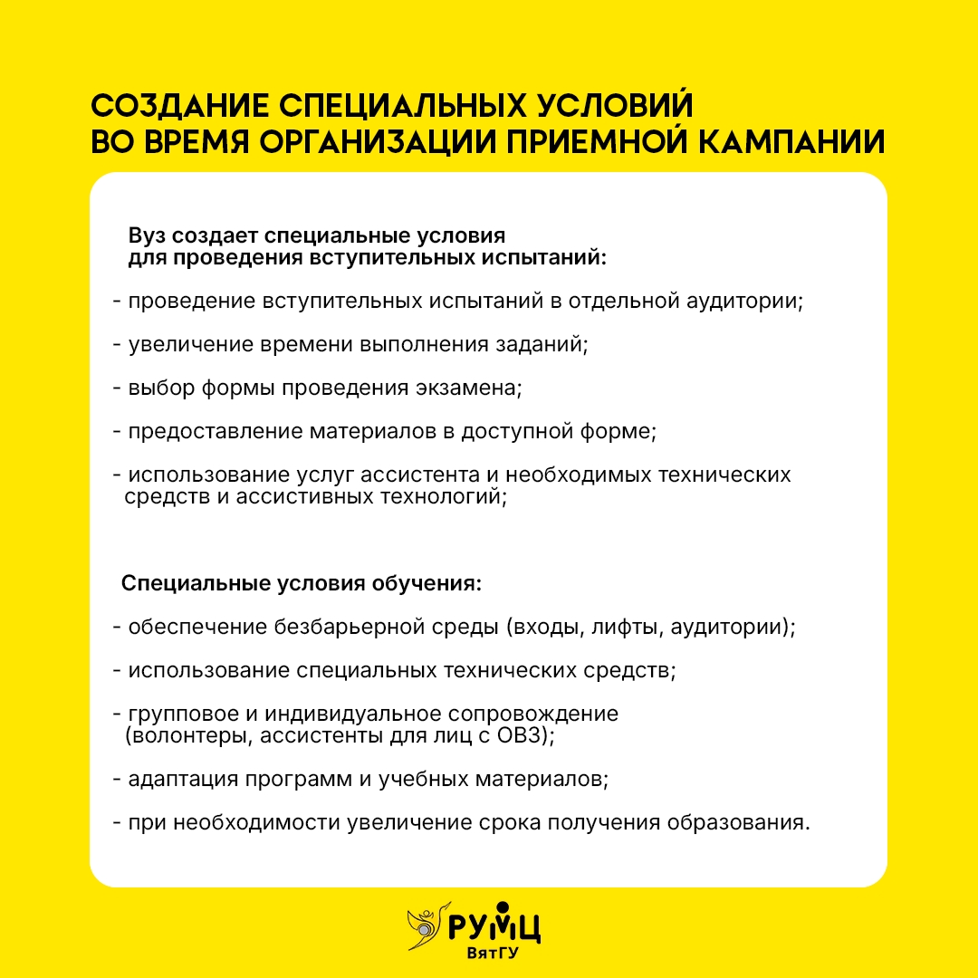 В ВятГУ созданы все условия для комфортного обучения студентов с нарушениями слуха, зрения, речи, опорно-двигательного аппарата и расстройствами аутистического спектра.