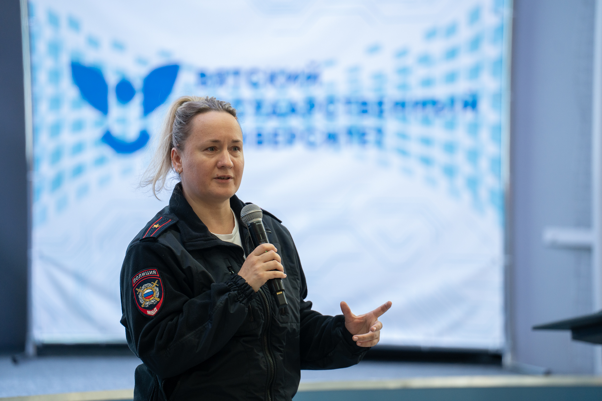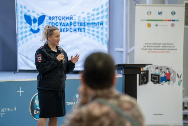 Следует отметить, что, помимо соревновательной части, программой была предусмотрена обширная образовательная составляющая. Одним из наиболее актуальных явилось выступление старшего оперуполномоченного Управления уголовного розыска УМВД России по Кировской области Оксаны Николаевой. Оксана Анатольевна подробно рассмотрела психологические аспекты противодействия телефонному мошенничеству в финансовой сфере.