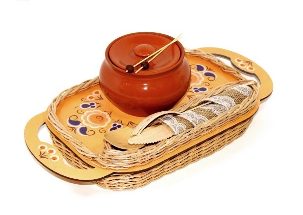 Комплект изделий, выполненных сочетанием комбинированных технологий (плетение, столярные работы, лазерная резка, роспись), совместно с ООО “Азимут” (г. Кирово-Чепецк)