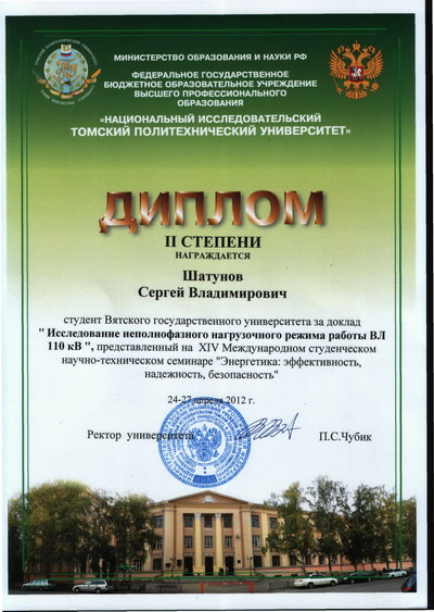 Также в рамках «Недели НИРС-2012 в ЭНИН ТПУ» проходил XIV Международный студенческий научно-технический семинар «Энергетика: эффективность, надежность, безопасность», в котором студент группы ЭС-51 Шатунов Сергей Владимирович выступил с докладом «Исследование неполнофазного нагрузочного режима работы ВЛ 110 кВ» и был отмечен дипломом II степени НИ ТПУ.