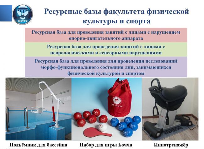 В ходе доклада был представлен опыт сопровождения двигательной активности студентов с ОВЗ и с инвалидностью в ВятГУ, а также формированию и подготовке студенческих команд по участию во Всероссийских фестивалях по адаптивной физической культуре, организованными сетью РУМЦ ВО.