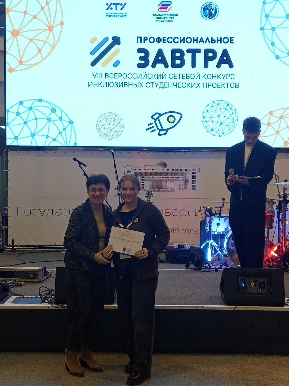 Поздравляем студентов-победителей Конкурса и ребят, получивших достойные награды по различным компетенциям: 3 место в номинации «Технологический проект» заняли Анна Каменева и Артём Бондаренко (Уфимский университет науки и технологий, г. Уфа и г. Кумертау); Алена Пыхтеева (Вятский государственный университет, г. Киров) получила диплом по компетенции «Актуальность проекта» в номинации «Медиапроект», Александра Мухачева, Анастасия Гончарук, Марина Братчикова (Вятский государственный университет, г. Киров) - диплом по компетенции «Лучшая зашита проекта» в номинации «Социальный проект», Алина Никитина и Камиль Гареев – диплом по компетенции «Лучшая презентация проекта» (Уфимский университет науки и технологий, г. Уфа); студенты Казанского национального исследовательского технического университета им. А.Н. Туполева Жаргалма Сыренова и Софья Бируля по компетенции «Актуальность проекта».