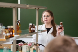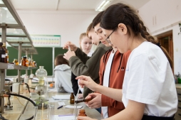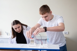Вторая часть программы была реализована на кафедре фундаментальной химии и методики обучения химии. Доцент Мария Сазанова провела для учащихся 10 класса лабораторную работу «Кислородсодержащие органические соединения». Девятиклассники в рамках лабораторной работы решали практические задания ОГЭ.