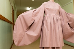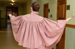 Вторую, еще более объемную, часть проекта составила авторская коллекция Валерии Ушаковой, вдохновленная картиной «Возвращение солдата», которую русский живописец Алексей Венецианов написал в конце 1830-х годов.