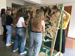 Волонтеры - студенты и преподаватели Педагогического института ВятГУ и Института гуманитарных и социальных наук ВятГУ завершили создание очередной партии маскировочных сетей и подготовили ее к отправке в зону боевых действий. Маскировочные сети предназначены для укрытия и защиты военнослужащих, техники, вооружения и других объектов. От их количества напрямую зависят жизни наших бойцов.