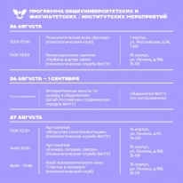 На О-неделе вы познакомитесь с другими первокурсниками, сориентируетесь в корпусах ВятГУ, подготовитесь к учёбе, получите важную информацию о своём институте, основных контактах и административных офисах, узнаете о доступных сервисах ВятГУ, посетите квесты, мастер-классы и презентацию студенческих объединений.