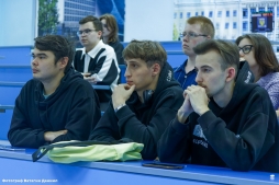Слева направо: Павел, Кирилл, Матвей на собрании Федерации спортивного программирования