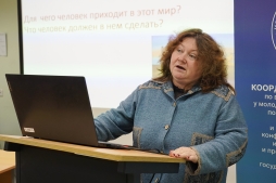 Доцент кафедры культурологии, социологии и философии ВятГУ Екатерина Быкова представила многообразие философских концепций, раскрыла понятия «смысл жизни» и «осмысленная жизнь», подчеркнув влияние культурной среды на формирование мировоззрения.