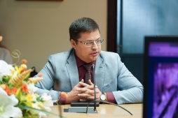 Дмитрий Плотников, директор Опорного научно-методического центра по разработке содержания модуля "Основы российской государственности" и механизмов его внедрения ВятГУ осветил вопрос: может ли человек утратить ценностные ориентиры в информационном шуме? Дмитрий Александрович подчеркнул необходимость формирования российских духовно-нравственных ценностей на протяжении всего периода обучения в вузе, чтобы уберечь их от искажения.