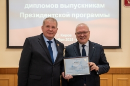 Президентская программа подготовки управленческих кадров «Менеджмент» позволяет специалистам не только получить профессиональные знания в сфере управления, но и принять участие в стажировках на ведущих российских и зарубежных предприятиях. В торжественной обстановке дипломами наградили и выпускников, успешно завершивших стажировку в рамках Программы.