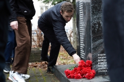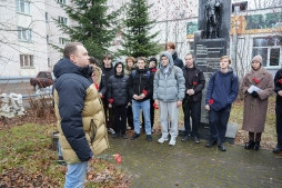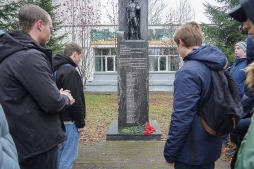 В эту памятную дату студенты первого курса электротехнического факультета, их преподаватели и сотрудники отдела воспитательной работы и социальной адаптации Вятского государственного университета возложили цветы к Памятнику молодому солдату в Студгородке.