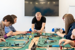 Здесь и сейчас будущие студенты колледжа ВятГУ, участника проекта «Профессионалитет», получают первые знания по выбранным профессиям. Они осваивают навыки электромонтажа, программирования мехатронных модулей и роботизированных платформ – и все это для чего? Для того, чтобы ребята понимали, какое их ждет будущее, чем им предстоит заниматься, в каких лабораториях будет происходить обучение.