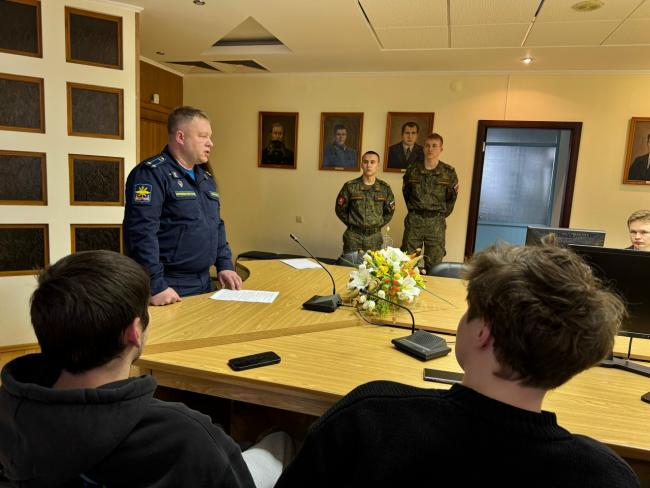 Гостем университета выступил заместитель руководителя Межвузовского военного учебного центра, подполковник Сергей Чикишев.