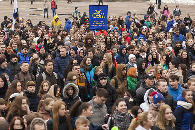 Около 2 тысяч человек с удовольствием и азартом повторяли вслед за Анной Альминовой несложные физические упражнения: прыгали, приседали, делали наклоны и т. д. Как позже отметили студенты, зарядка и общение со звездой подарили им массу положительных эмоций.