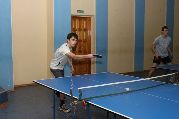 Традиция проведения турниров по настольному теннису была возрождена в прошлом году. На этот раз турнир собрал 16 участников. От каждого общежития выступили 3 юношей и 1 девушка. Теннисистки играли по круговой системе, юноши путем жребия были поделены на 4 группы. Участники, занявшие первые и вторые места, выходили в плей-офф.